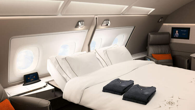 Mit ihren neuen Premium-Kabinenprodukten bewerben sich Singapore Airlines und Qatar Airways. SIA geht mit ihrer neuen First-Class-Suite ins Rennen, die eine Atmosphäre fast wie im Hotelzimmer bietet. Für Paare gibt es die Möglichkeit, die Trennwand zur benachbarten Suite zu entfernen und ein echtes Doppelbett zu erhalten. Qatars neue Business-Class-QSuite lässt sich in eine Art Großraumabteil umwandeln, indem bis zu vier Sitze zueinander positioniert werden können.
