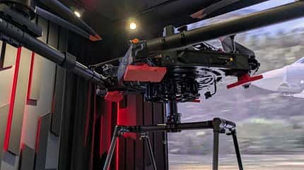 Honeywell zeigt sein neues Radarnavigationssystem (die roten Kästchen) an einer Drohne.