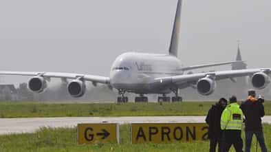 Der erste an Lufthansa gelieferte Airbus A380, D-AIMA, ist am Sonntag in Manila eingetroffen, wo...