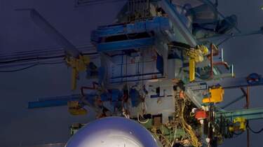 Richtig futuristisch mutet der extra für das F135 der Lockheed Martin F-35 modifizierte Prüfstand C12 an, bei dem es erheblich lauter als bei den Getriebefans zugeht. „Hier können wir alle sechs Schubachsen messen“, sagt O’Neill stolz. Die zusätzlichen „Spinnenbeine“ waren für den Senkrechtstartmodus (STOVL) nötig. „Bei den genauen Schubmessungen darf sich nichts bewegen. Aber im STOVL-Betrieb wollte das Triebwerk den Prüfstand förmlich aus dem Boden reißen.“ Daher waren die tief im Boden verankerten Beine nötig.