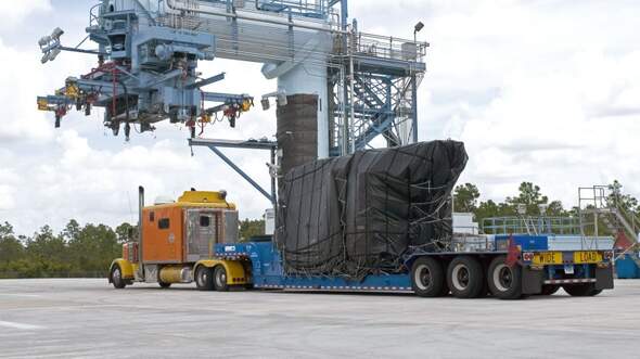 Laut brummend bewegt sich das Gefährt um das turmartige Gebilde. An dessen oberem Ende installieren Techniker gerade den neuen Stolz von Pratt & Whitney: ein für die CSeries von Bombardier vorgesehener PW1524G-Antrieb. Im Testbetrieb dürfte der Getriebefan zeitweilig nur wenig lauter sein als der Aufsitzrasenmäher, der das Prüfstandgelände während einer Versuchspause umkreist. „Ist das Triebwerk im Leerlauf, kann man trotzdem noch daneben sein Funktelefon benutzen. Selbst bei vollem Startschub konnten wir auf dem Gras neben dem Teststand stehen, ohne Gehörschutz tragen zu müssen“, sagt Michael O’Neill, Site Manager des Florida Test Center von Pratt & Whitney.