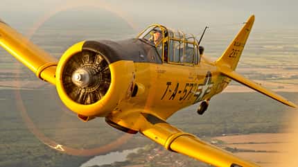 Die T-6 ist ein bulliger Militärtrainer mit 600 PS starkem Sternmotor.