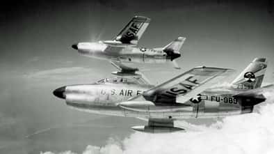 Schallschnell und leicht manövrierbar machte die F-86 Sabre mit ihren charakteristisch...