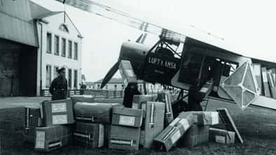 Am 19. August 1911 transportierte ein Harlan-Eindecker druckfrische Exemplare der "Berliner...