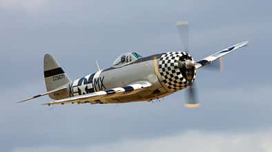 Nach 16 Jahren kehrt die Republic P-47 Thunderbolt "No Guts, No Glory" nach Großbritannien...