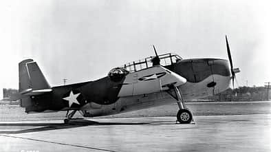Der trägergestützte Ganzmetall-Mitteldecker Grumman Avenger (Rächer) entstand ab 1939 auf...
