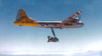 Die EB-29 traf Ende Mai 1948 auf der Basis Muroc in Kalifornien (heute Edwards AFB) ein. Dort hatte man eine 5,3 Meter tiefe Grube ausgehoben, sodass die Goblin einfach von unten an Bord gehievt werden konnte. Mit dem Parasit-Jäger, 17 000 Litern Kraftstoff und einer achtköpfigen Besatzung betrug die Abflugmasse 51 075 kg.