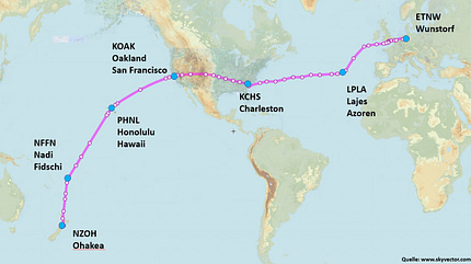 Die erste Etappe über rund 3.370 Kilometer führte von Wunstorf auf die im Atlantik gelegenen Azoren. Von dort führt der Flugweg weiter über den Atlantik in Richtung USA.