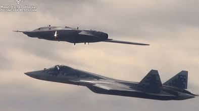 Russlands neue Stealth-Kampfdrohne, die Suchoi S-70 Ochotnik, setzt ihre Flugerprobung fort:...