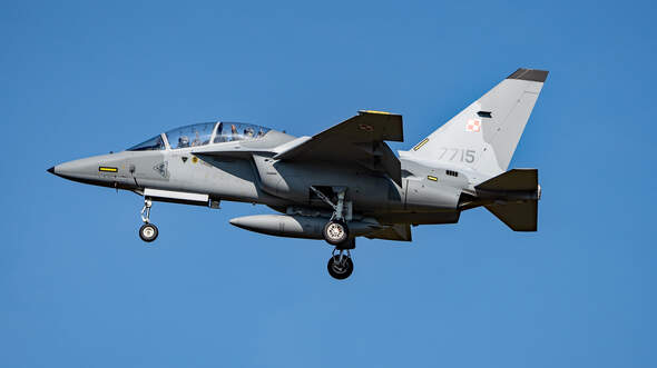 Su-22 zeigen sich am Freitag leider keine. Dafür neben den F-16 diese Leonardo M-346.