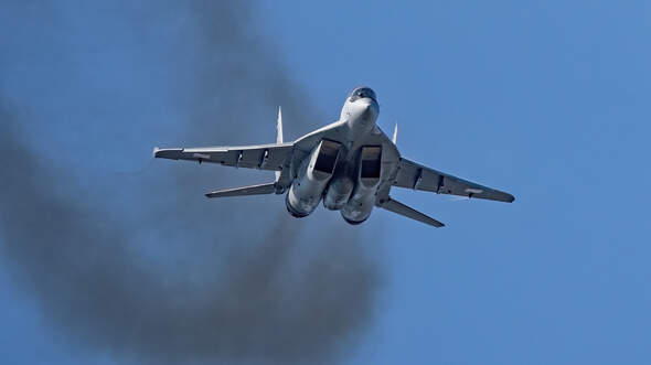 Action mit integrierter Rauchanlage: Die MiG-29 trumpfen mit einer kleinen, feinen Vorführung auf - landen aber nicht.