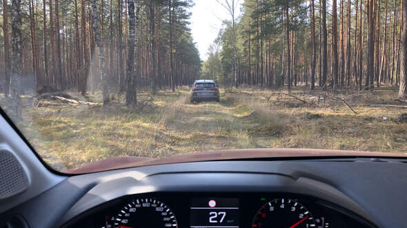 Zurück an den Autos kurzer Krisenrat. Laut Karte sind wir kurz vor Ruskowo, am anderen Ende also. Die wirklich allerletzte Möglichkeit: Dorthin fahren, auf die Straße stellen und hoffen, dass die "Herc" schön flach rausgeht. Und dann direkt zurück nach Warschau – Nase voll.