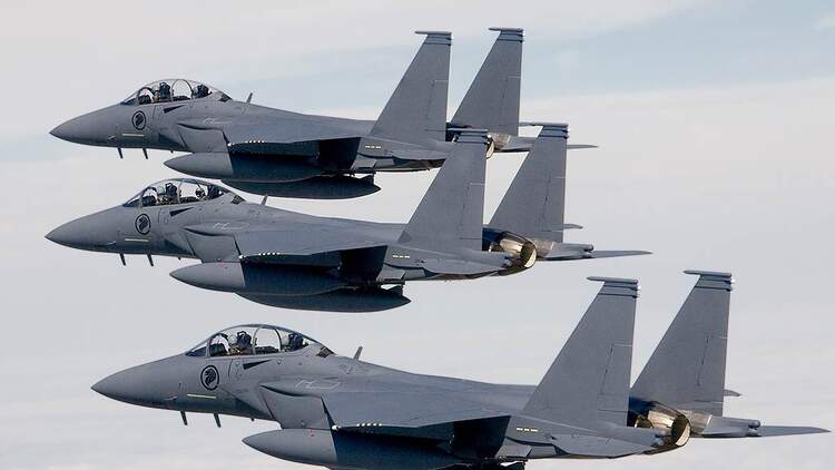 Die zweisitzige F-15E „Strike Eagle“ und ihre moderneren Derivate erweiterten das Einsatzspektrum der F-15 erheblich. War das Flugzeug bis dato vor allem in seiner originären Rolle als Abfangjäger in der Pflicht, lässt sich die „Strike Eagle“ auch mit umfangreicher Luft-Boden-Bewaffnung bestücken. Herauszuheben ist dabei die hohe Zuladung: Die F-15E kann mehr als 11000 Kilogramm Waffen aufnehmen.