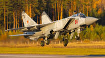 Sie fliegt 3.000 km/h schnell und mehr als 20 Kilometer hoch, ist über als 40 Jahre alt, aber noch lange nicht am Ende: Die Mikojan-Gurewitsch MiG-31 gilt seit den frühen 80er-Jahren als unersetzlicher Stützpfeiler im Arsenal der russischen Luftstreitkräfte. Als reinrassiger Abfangjäger liegt ihre primäre Aufgabe im Schutz des heimischen Luftraums, wenngleich sie heute in Gestalt der Spezialversion MiG-31K, bestückt mit der Hyperschall-Lenkwaffe Kinschal, auch Angriffsaufgaben übernimmt.