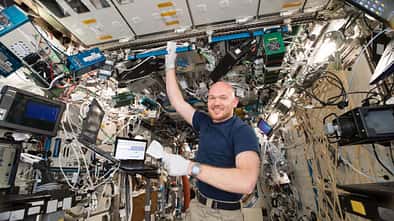 Der deutsche Astronaut Alexander Gerst hat sich in einem Live-Call von der ISS gemeldet und gibt...