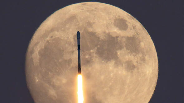 Viele Nationen und Unternehmen wollen zum Mond. Auch SpaceX, hier eine Falcon 9, plant Flüge mit dem Starship dorthin, im Auftrag der NASA.