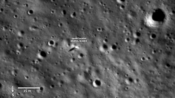 Landestelle von Chandrayaan-3 aus Sicht des Chandrayaa-2-Orbiters.