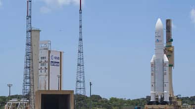Am Dienstag war der Start einer Ariane 5 mit zwei Satelliten an Bord in den letzten Sekunden des...