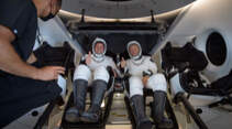 Das Wetter in Florida zeigte sich wie schon beim ersten Startversuch am Mittwoch kapriziös. Doch am Samstag reichten die Bedingungen, damit die neue SpaceX-Kapsel zur bemannten Demo-2-Mission aufbrechen konnte. Um 21.22 Uhr (MESZ) hob die Falcon-9-Rakete vom Launch Complex 39A des Kennedy Space Center ab. An ihrer Spitze: die erstmals bemannte Crew Dragon. Die NASA-Astronauten Douglas Hurley und Robert Behnken fliegen mit der neuen SpaceX-Kapsel im Rahmen des letzten Tests vor der Zulassung zur Internationalen Raumstation.