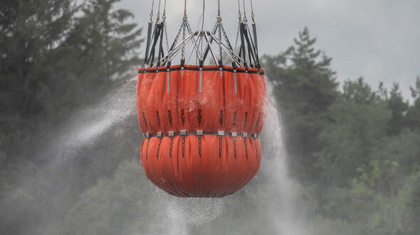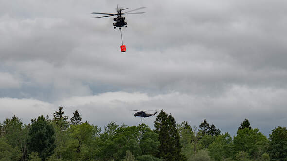 Während die CH-53 auf dem Lech noch ihren Löschbehälter füllt, sind an der Abwurfzone bereits Videokameras auf die Zielobjekte gerichtet. Sie filmen den Einsatz der Crews und helfen so bei der anschließenden Evaluation. "Die Aufnahmen werden den Besatzungen gleich nach dem Abwurf zugesandt", betont Leutnant Locherer. "So können sie anschließend Manöverkritik üben, um beispielsweise festzustellen, weshalb das Ziel nicht getroffen wurde." Wo und wie genau die Hubschrauber ihr Wasser abregnen sollen, entscheidet im Ernstfall der Einsatzleiter der Feuerwehr. Genaue Absprache mit den Bodenkräften ist allein schon deshalb unabdingbar, weil eine Wassermenge von fünf Tonnen, unplatziert abgeworfen, für Menschen am Boden zur Gefahr für Leib und Leben wird. "Es kommt auch vor, dass ein Beobachter der Feuerwehr in der CH-53 mitfliegt, damit er die Lage besser beurteilen kann", ergänzt Presseoffizier Locherer.