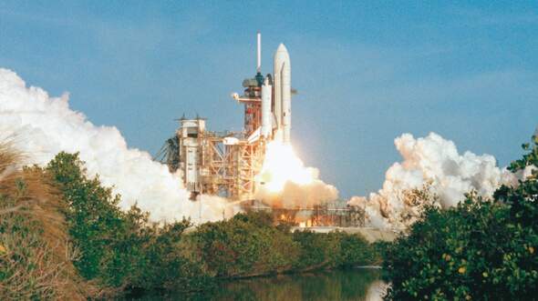 April 1981 – Mehrere Startverschiebungen führten dazu, dass das Space Shuttle Columbia genau 20 Jahre nach dem ersten Raumflug von Juri Gagarin zu seinem Jungfernflug abhob. „In den letzten Sekunden ... erwartungsvolle Stille, die sich in einen wahren Freudentaumel wandelte, als die Columbia – von einem riesigen Feuerstrahl angetrieben – langsam von der Startplattform abhob und an Höhe gewann. Doch der Jubel der begeisterten Menge ging schnell unter in dem ohrenbetäubenden Lärm, den die Triebwerke und Raketen des Raumschiffes in einem Umkreis von 40 km verbreiteten. Erdboden und Tribünen erzitterten unter den Schall- und Druckwellen, bis die Columbia nach und nach den Blicken in Richtung Orbit entschwand.“ [FLUG REVUE 6/1981]