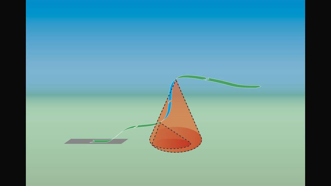 In extrem großer Höhe von 33 bis 35 Kilometern soll das Ultra-Rapid Air Vehicle um den Globus rasen. Der Schallkegel des von der Bugspitze in einem Winkel von 11 bis 15 Grad abgestrahlten Überschallknalls wird von dort oben über einen 110 bis 175 Kilometer breiten Streifen der Erdoberfläche weiträumig verteilt und soll dadurch am Boden weniger stark stören. Zur Stabilisierung werden für den Reiseflug mit Erreichen des Überschalltempos zwei drehbare Hilfsleitwerke an den Flügelenden senkrecht gestellt. Kurz vor dem Ziel werden die Ramjets abgestellt, und Spaltklappen an den Flügelhinterkanten erzeugen eine starke Bremswirkung. Mit dem Einleiten des sehr steilen Abstiegs wird schließlich Unterschalltempo erreicht. Schnell sinkt der Hyperschall-Vogel in dichtere Luftschichten, wo die Turbojets wieder ausgefahren und angelassen werden können. Damit sind Anflug und Landung auf konventionelle Weise möglich.