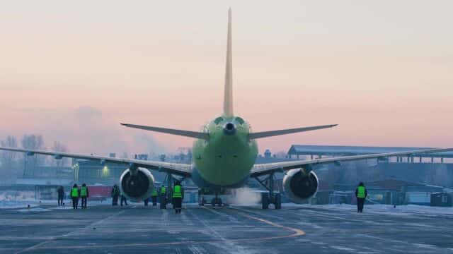 Eine Stunde und 25 Minuten währte der Flug, der für Russlands zivilen Flugzeugbau die Tür zu einer neuen Ära öffnen könnte: Zum ersten Mal erhob sich heute Morgen in Irkutsk die MS-21 mit der Baunummer 73055 als fünfter Prototyp des neuen Zweistrahlers in die Luft. Gegenüber seinen vier bereits fliegenden Schwestermaschinen besitzt "Nummer 5" eine Besonderheit: Während die ersten vier Flugzeuge von Pratt & Whitneys Getriebefan PW1000G angetrieben werden, setzt Irkut beim fünften Prototypen auf Triebwerkstechnik made in Russia: Unter den Flügeln der Testmaschine feierten die neu entwickelten PD-14-Turbofans Premiere.