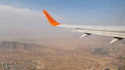 Diesmal fliege ich mit einer 28 Jahre alten Boeing 737-300 von Kam Air. Die YA-KML stand bis 2019 in Diensten von Southwest in den USA. Heute bringt sie mich nach Islamabad in Pakistan. Auch dieser Maschine sieht man ihr Alter deutlich an. Um 15:22 Uhr starten wir auf der Runway 11. Für die kurzen 45 Minuten Flugzeit braucht die 737 relativ viel Rollstrecke. Das ist aber bei 30 Grad Celsius Außentemperatur und einer Platzhöhe von 1791 Meter auch kein Wunder.