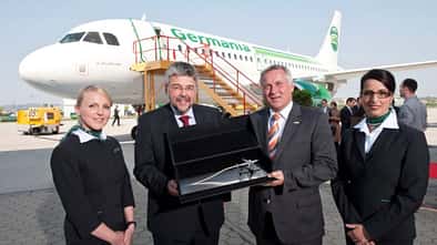 Für ihre neue Tochter in der Schweiz sucht die deutsche Fluggesellschaft Germania Erste...