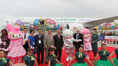 Die taiwanesische Fluggesellschaft EVA Air liebt die Comicfiguren rund um "Hello Kitty" und ihre...
