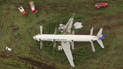 Nach der Notlandung eines Airbus A321 der Ural Airlines auf einem Maisfeld nahe Moskau...