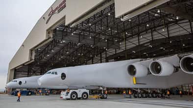 Zwei Rümpfe, sechs Triebwerke und die größte Spannweite der Welt. Das ist Stratolaunch, ein...