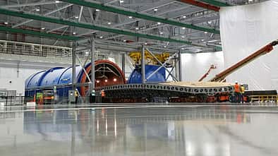 In der neben der Endmontagehalle von Everett neu errichteten Flügel-Produktionshalle hat Boeing...