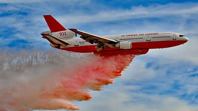 Die Boeing 747-400 der Firma Global SuperTanker trieb die Brandbekämpfung aus der Luft auf ein...