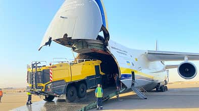Antonov Airlines schickte jüngst eine An-124 nach Nahost, um von dort Panther-Feuerwehrtrucks...